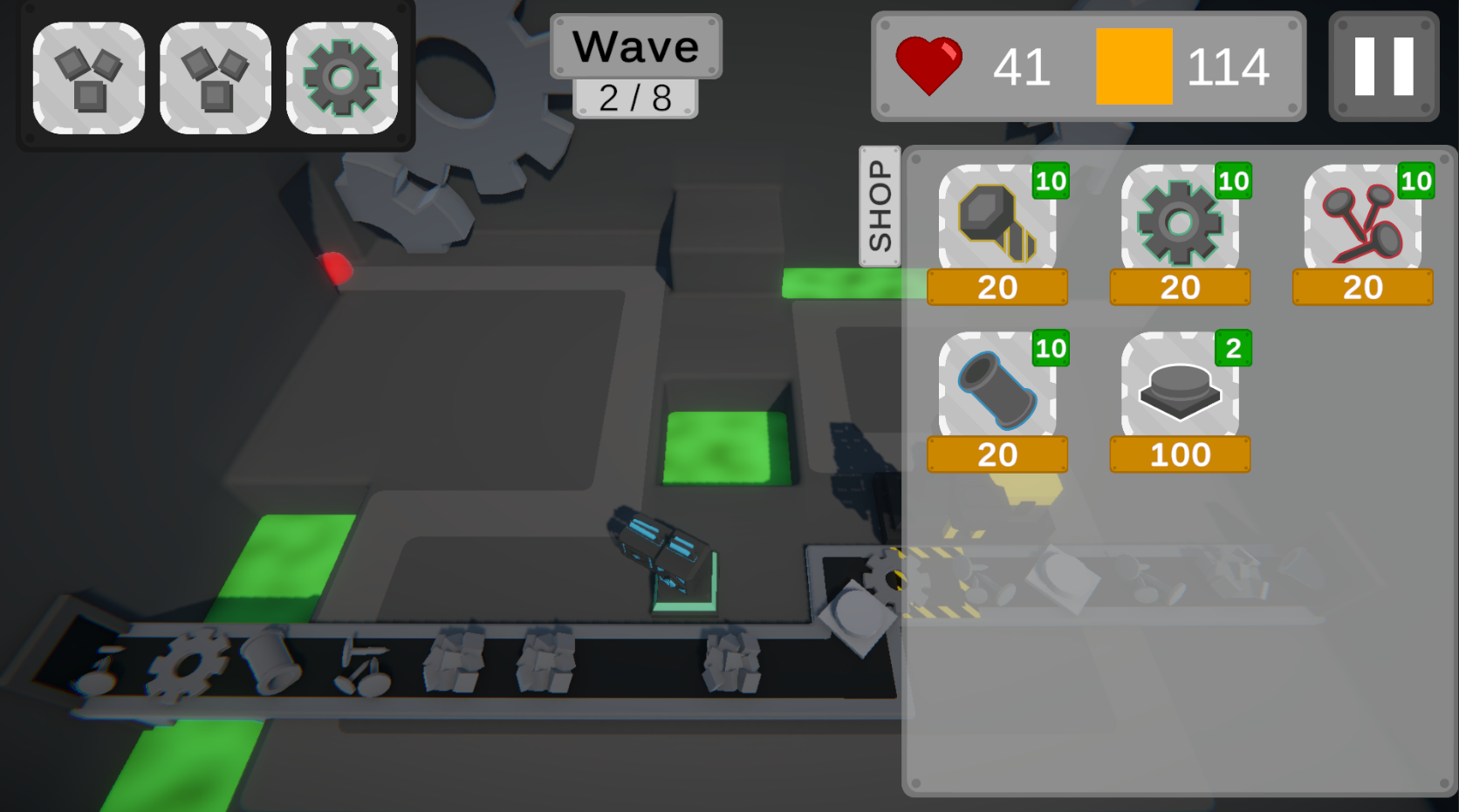 In this 3D tower defense game, you're not just placing towers, you're assembling them piece by piece. Grab components from the conveyor belt, place a base on the grid, and build custom towers by combining parts. Once complete, the tower activates and locks in its bonuses.
